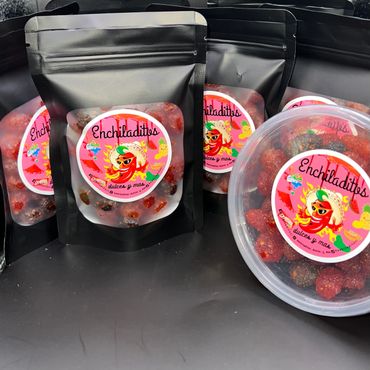 Enchiladitos is a small business located in Channelview, Texas, established in 2020. We specialize in original Dulces Enchilados (Spicy Candies) and Chamoy Rim Dips. All our candies are coated with our homemade tamarind sauce, which has a special blend of spices that gives a unique sweet and tangy flavor.